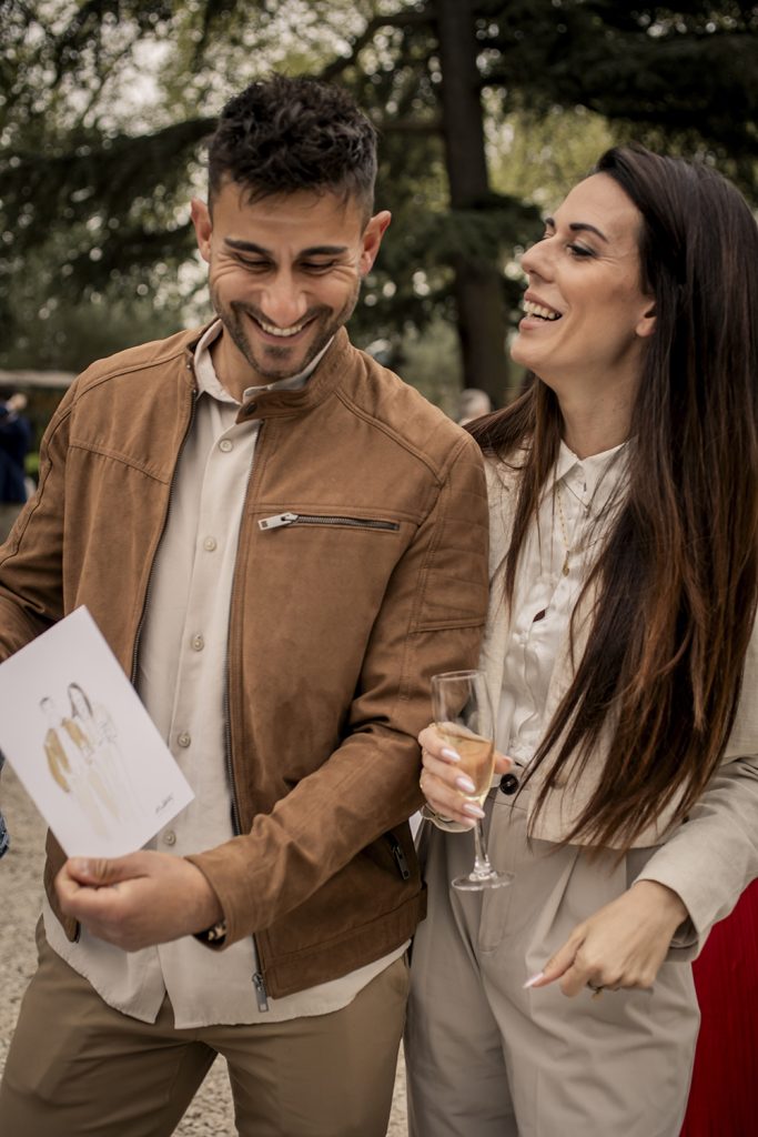 Après ça, un cocktail en plein air, des éclats de rire, des invités en feu 🔥, une aquarelliste talentueuse, un repas festif… Bref, une ambiance à leur image : vivante, touchante et complètement déjantée. Et quand les mariés sont aussi fous que leurs invités… tout roule 😄 !!